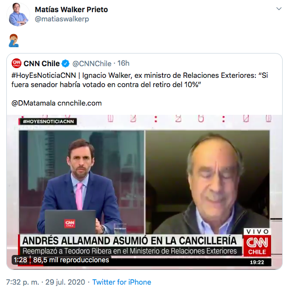 Una simple pero ilustradora reacción tuvo el diputado Matías Walker (DC) al rechazo expresado por su hermano, el ex senador Ignacio Walker (DC), al retiro del 10% de las AFP.