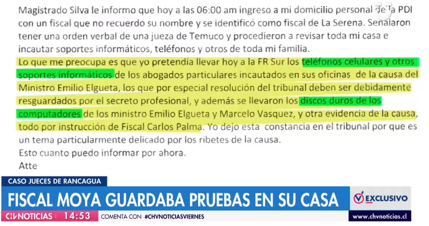 A través de un documento exclusivo al que accedió CHV Noticias, hoy se constató que el propio Moya informó al Juzgado de Garantía de la misma comuna que "a las 06:00 am ingresó a mi domicilio personal de la PDI con un fiscal que no recuerdo su nombre y se indentificó como fiscal de La Serena".