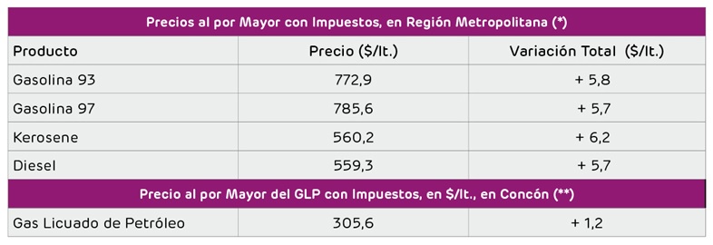 Este incremento se aplicará a los distribuidores mayoristas, por lo que el alza de precios al consumidor dependerá de cada empresa bencinera.