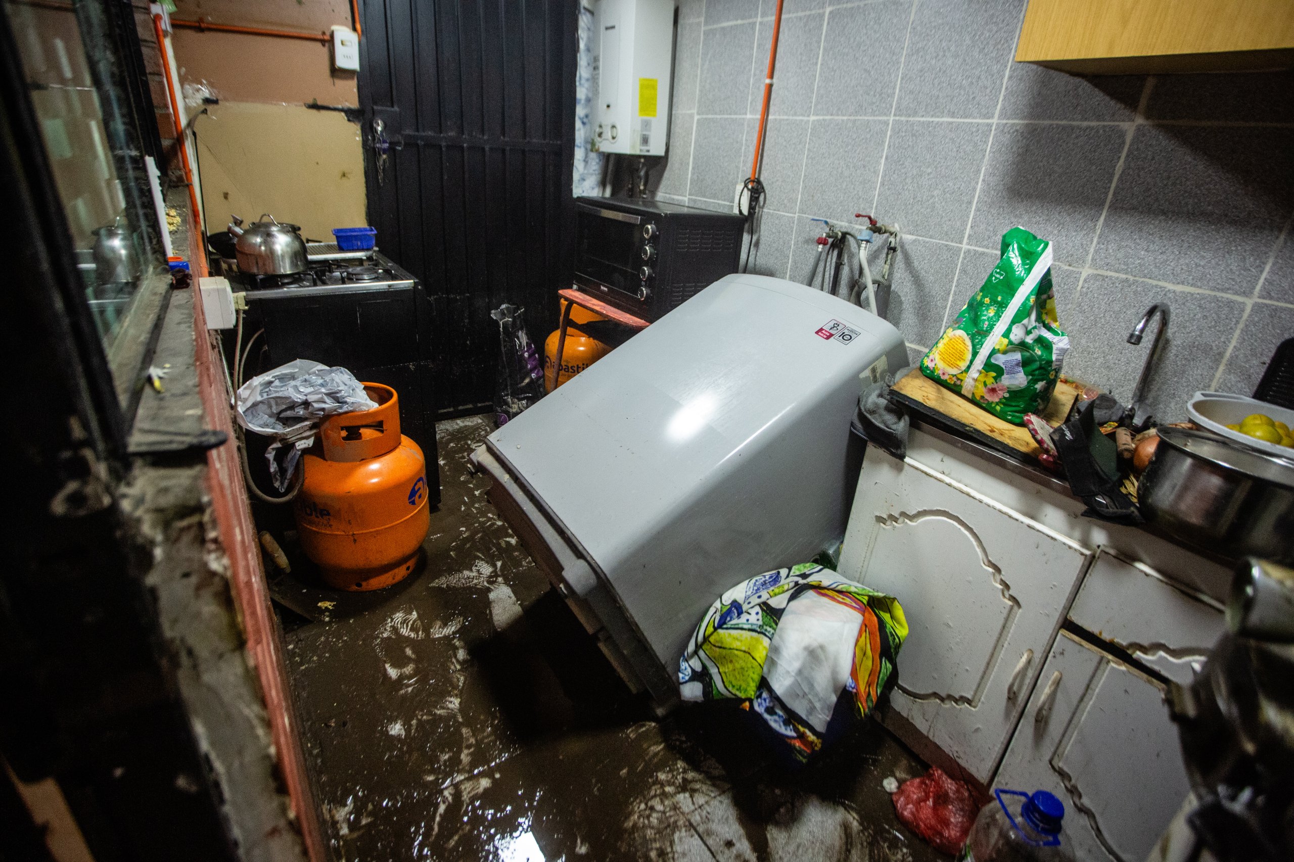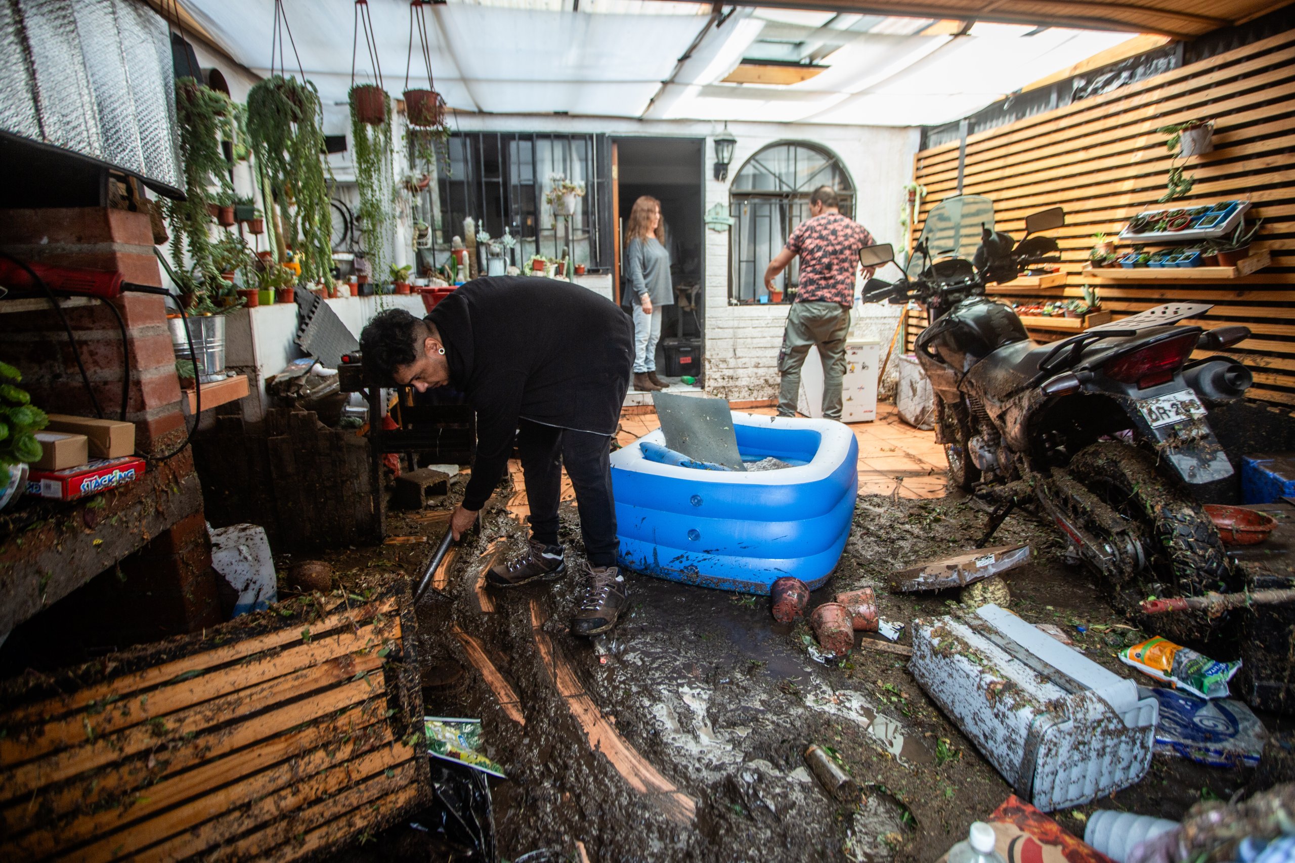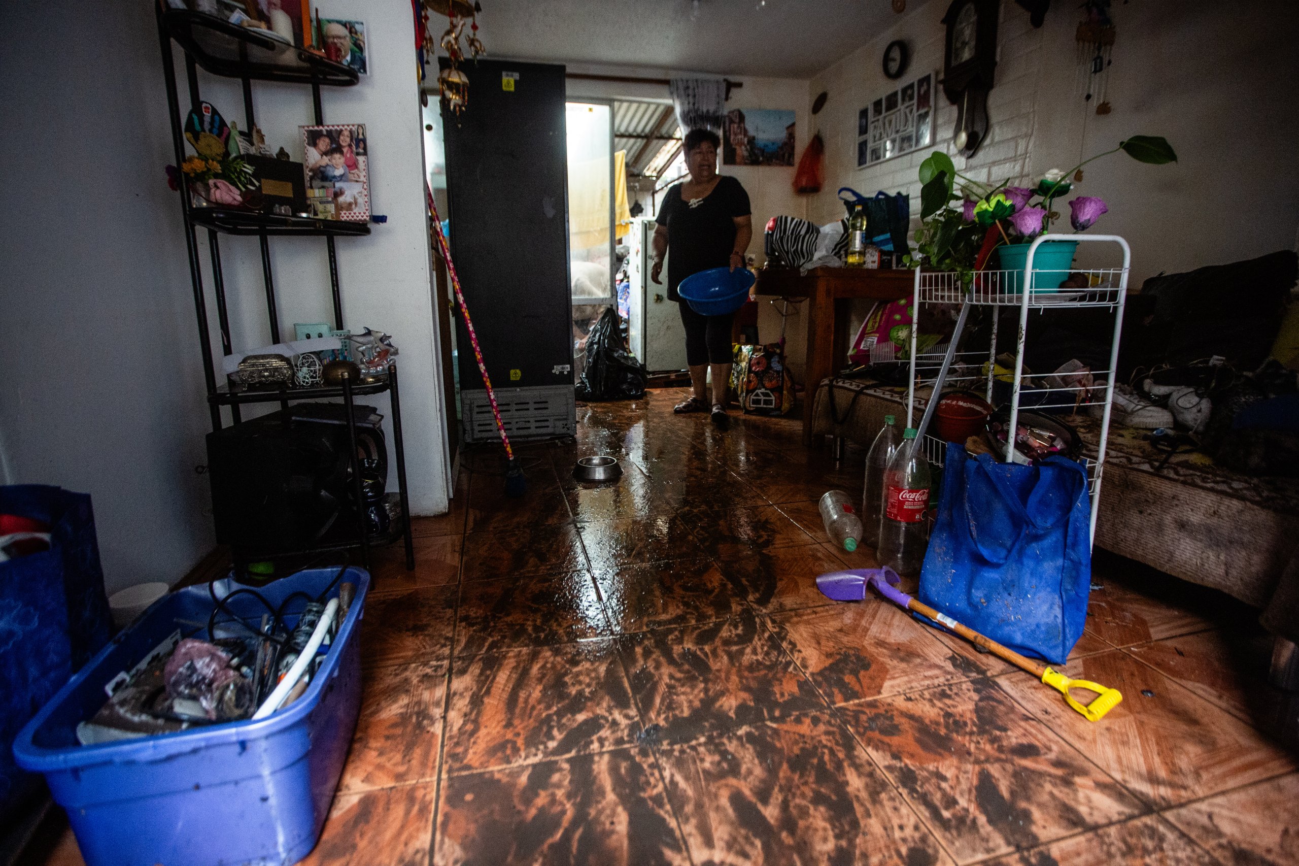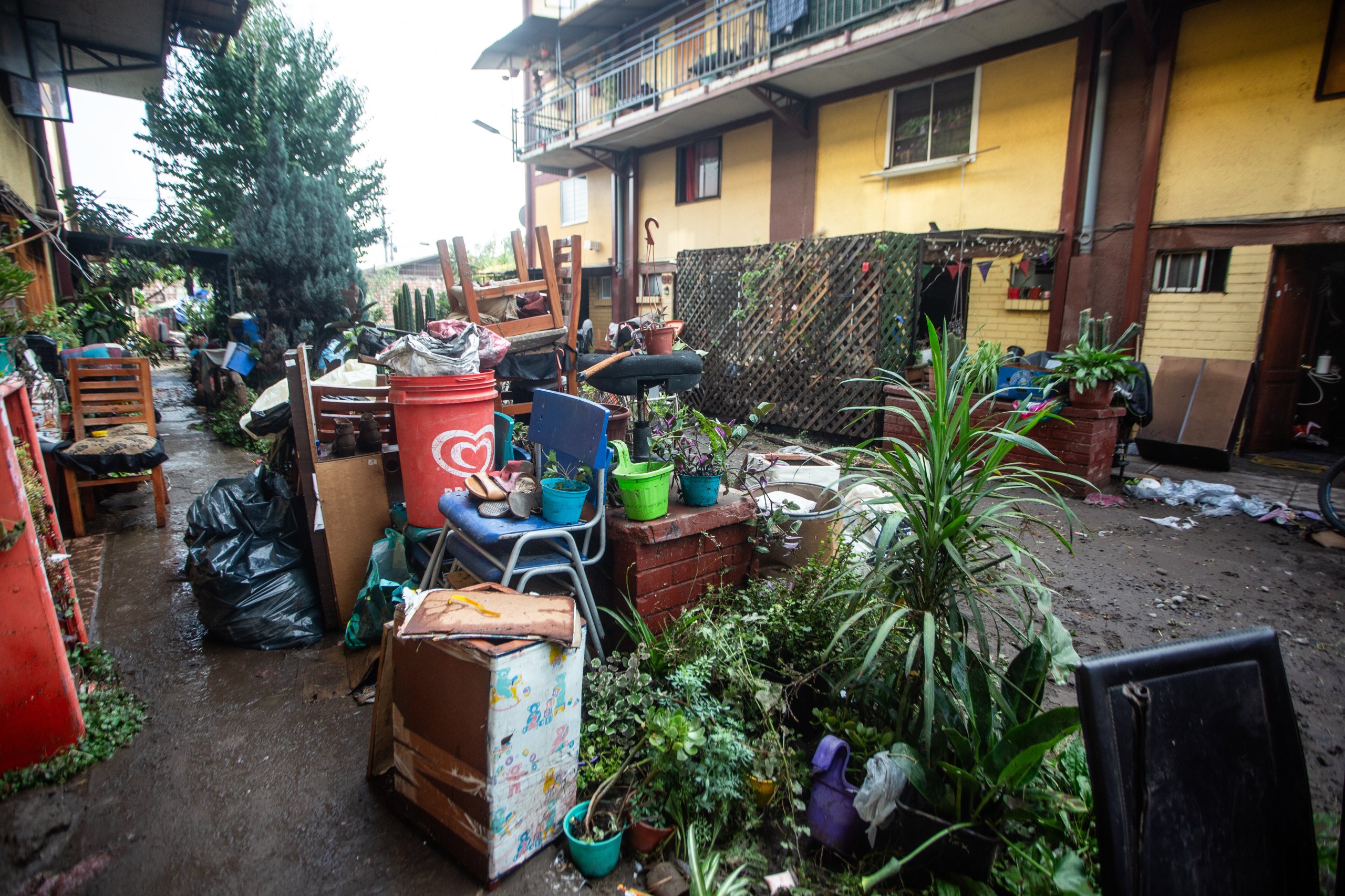 Algunas de las comunas más afectadas fueron Las Condes y Maipú, donde alrededor de 300 viviendas se llenaron de agua y barro por los más de 17 mm de lluvia que cayeron en horas de la tarde.