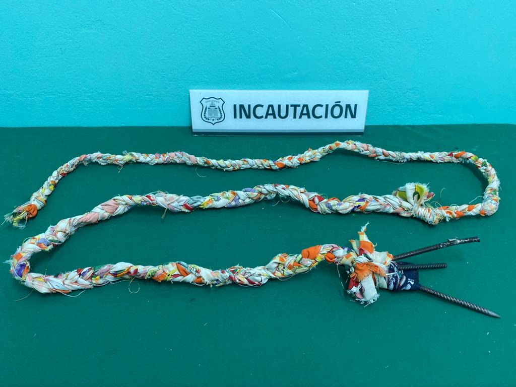 En la misma línea, detalló que "se procedió a efectuar un allanamiento exhaustivo en el sector, encontrándose una cuerda con fierros adheridos y un pequeño forrado de aproximadamente 30 cms. y con dirección a la línea de fuego".