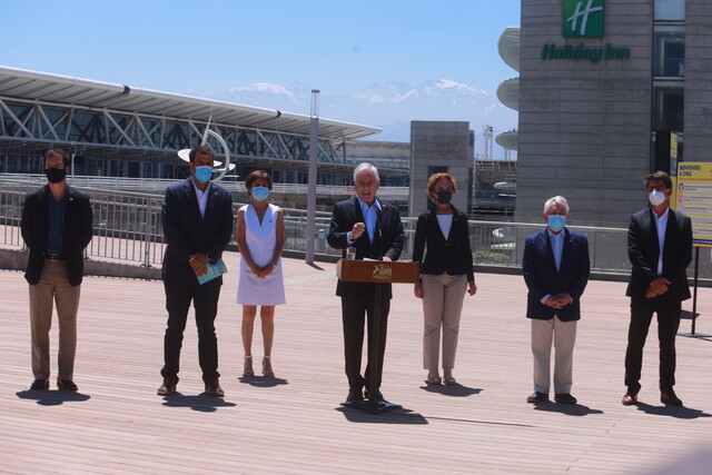 (Agencia Uno) – El Presidente de la República, Sebastián Piñera, acompañado por los ministros de Interior, Rodrigo Delgado; de Transporte, Gloria Hutt; de Salud, Enrique Paris; y de Economía, Lucas Palacios, anunció este domingo la primera etapa de la reapertura de fronteras en una actividad en el Aeropuerto Arturo Merino Benítez.
