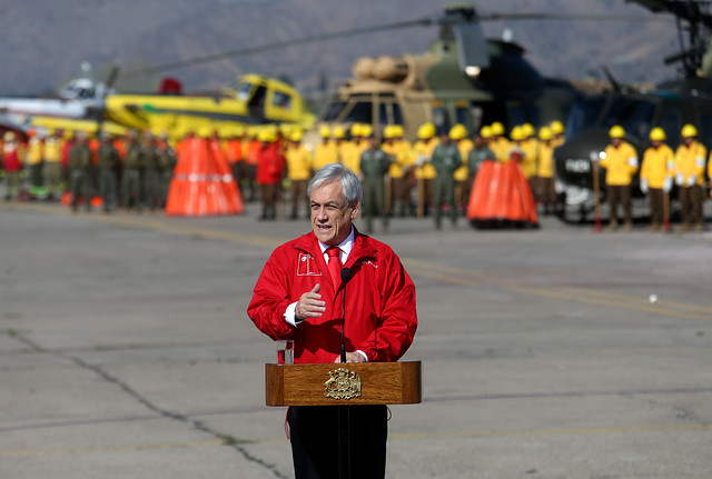 Sebastián Piñera, hizo el anuncio desde la base de la Fuerza Aérea en la comuna de El Bosque, acompañado del ministro de Agricultura, Antonio Walker; del titular de Defensa, Alberto Espina; y de la intendenta Karla Rubilar.