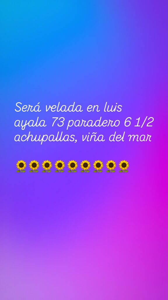En la misma línea, indicaron que “será velada en Luis Ayala 73, paradero 6 1/2 achupallas, Viña del Mar”.