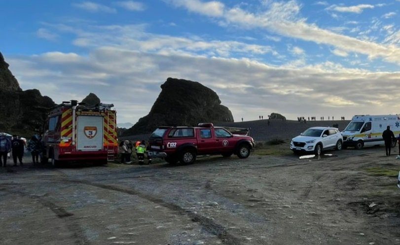 A casi dos horas del suceso, la mujer fue encontrada en unos roqueríos al suroeste de la playa, en estado de hipotermia, siendo trasladada al Hospital de Ancud.