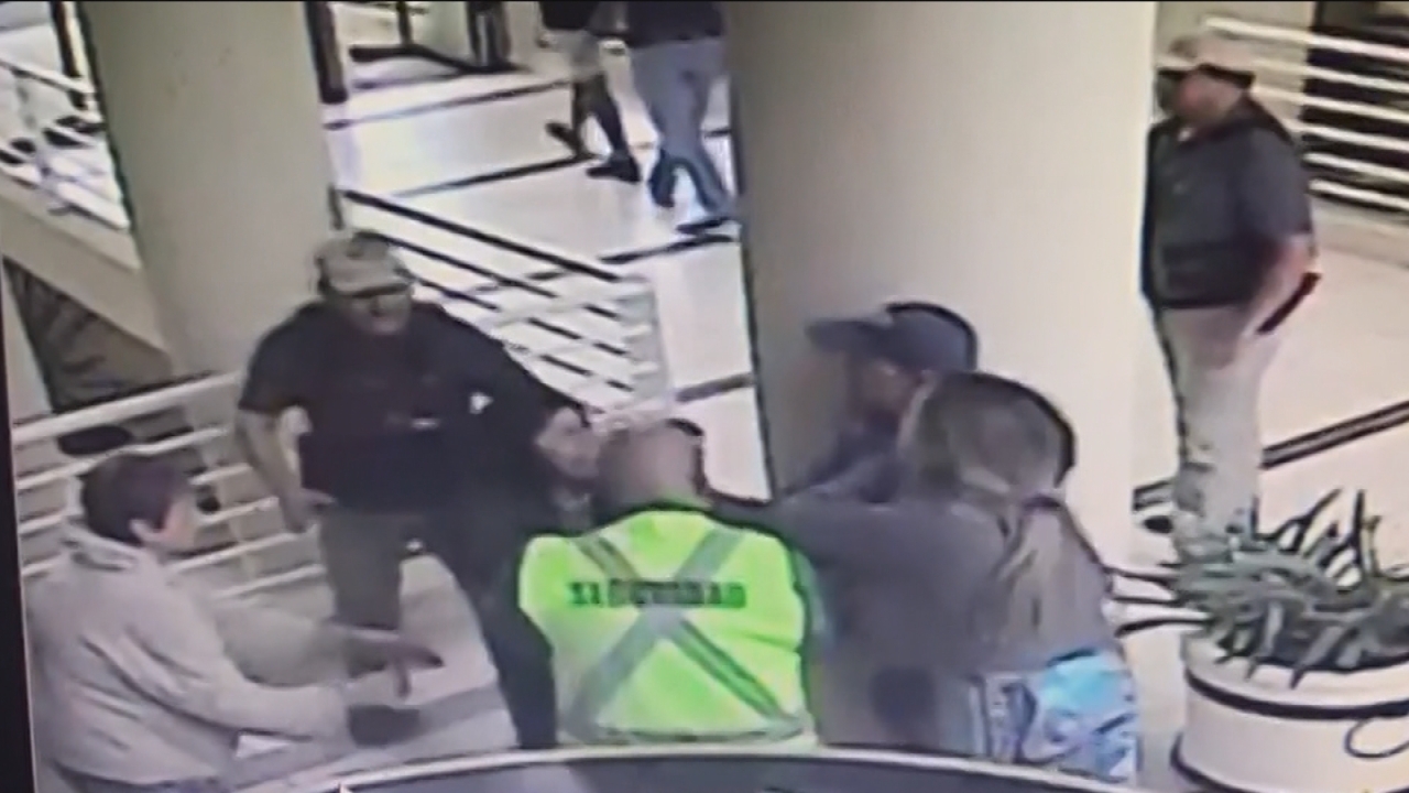 Te puede interesar: “Así tienen que estar, escondidas”: La funa a Patricia Maldonado, Raquel Argandoña y la doctora CorderoPero no fue el único, ya que el hombre que habría comenzado la agresión sacó un bastón retractil que tambien usó. Todo quedó registrado en las cámaras de seguridad.
