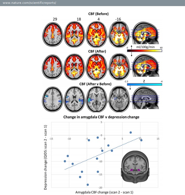 Te puede interesar: Uno de cada cinco chilenos tiene depresiónLa psilocibina es agonista de la serotonina y con las imágenes demostró disminuciones posteriores al tratamiento en la corteza temporal incluida la amígdala cerebral (la que se encuentra sobre activada con depresión). La disminución de ésta se correlacionó con una reducción de síntomas depresivos.