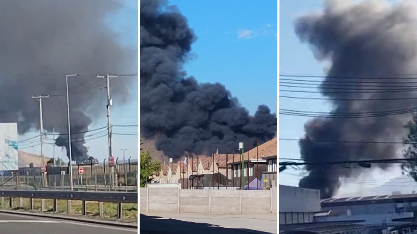 Según información preliminar, el siniestro, que ha provocado una inmensa columna de humo negro visible desde gran parte del sector norte de Santiago, afecta a unas bodegas de una empresa de fierros.