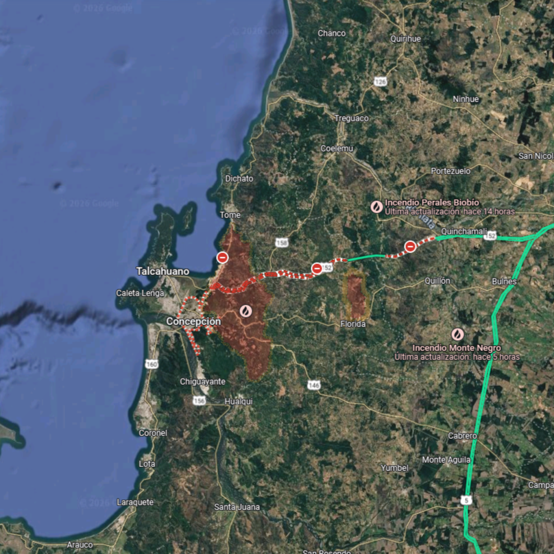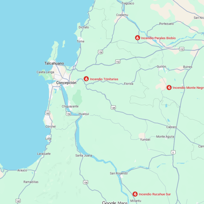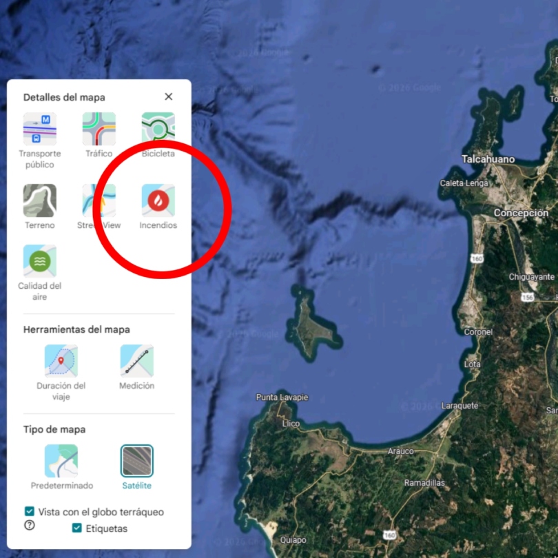 Google dispone de una herramienta que permite monitorear de cerca la emergencia en la zona sur, con un mapa interactivo que muestra los focos del siniestro en tiempo real.