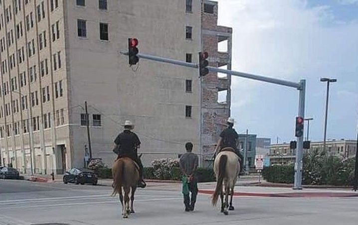 La fotografía de un par de policías blancos montando a caballo y transportando a un hombre negro esposado con una cuerda ha causado indignación en Estados Unidos y en redes sociales.