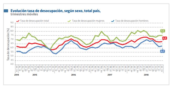 Esto supone un alza de 0.3 puntos porcentuales en relación a idéntico periodo del año previo. Esta cifra corresponde a los datos arrojados en el trimestre móvil de noviembre de 2018 y enero de 2019.