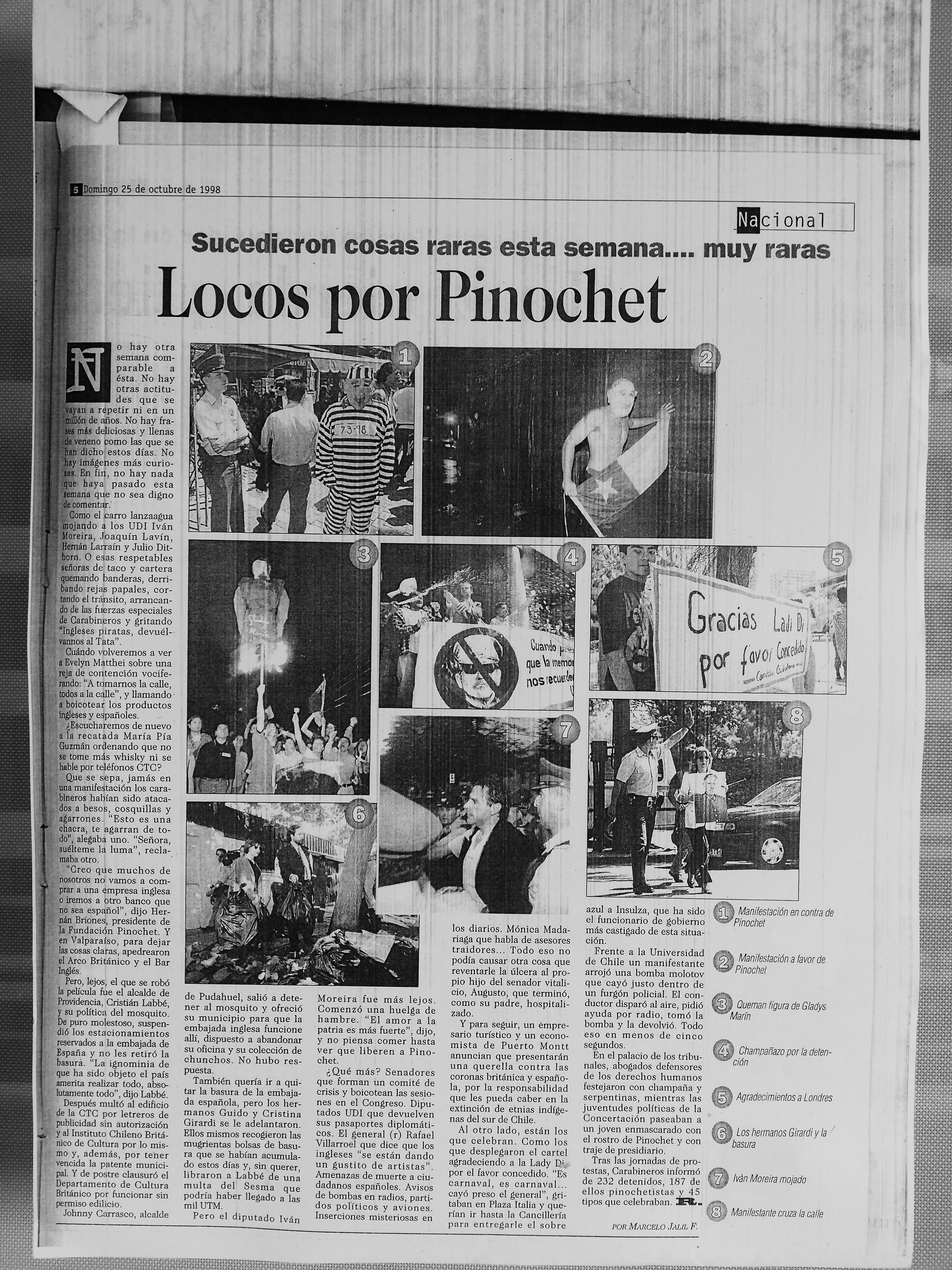 Una crónica publicada el domingo 25 de octubre de aquel año titulada "Locos por Pinochet" recuerda algunos de los actos más delirantes de aquellos días donde el carro lanzaaguas mojó a Iván Moreira, Hugo Dittborn, Hernán Larraín y Joaquín Lavín, todos miembros de la UDI.