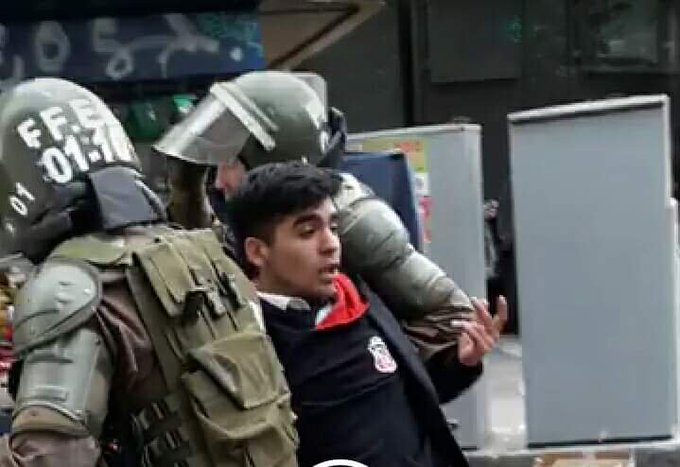 Tras la aplicación de los Manuales de Convivencia y la Ley de Aula Segura, se sumó la revisión de mochilas durante la manifestación. Así lo hicieron efectivos de Carabineros que se desplegaron entremedio de la manifestación, hasta que el enfrentamiento y las detenciones comenzaron en distintos sectores del centro de Santiago.