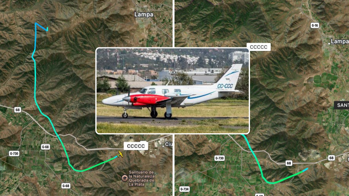 Según precisaron desde la Dirección General de Aeronáutica Civil (DGAC), la aeronave fue vista por última vez en una imagen radar en las cercanías del Cerro El Roble, en la comuna de Tiltil.