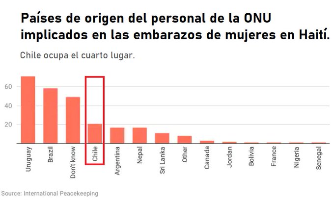 En los antecedentes se menciona que en el mencionado país nacieron 256 niños de padres soldados provenientes de una lista de 13 países, donde la misión chilena concentra el 20% de los casos de abusos sexuales. Entre las madres hay niñas de 11 años.