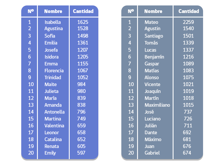 En lo que va del presente año, los nombres más inscritos en el país se destacan por lo clásico: Isabella y Agustina continúan imponiéndose entre los más elegidos, al igual que Mateo y Agustín.
