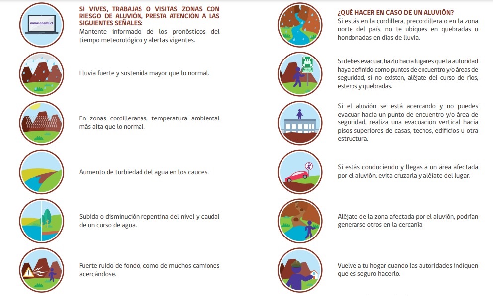 Onemi advierte “la posibilidad de ocurrencia de remociones en masa, tales como flujos (aluviones), deslizamientos y/o caídas de rocas (derrumbes)” para las zonas que reciban la mayor cantidad de precipitaciones que, según los pronósticos, se extendería entre Maule y Los Ríos.