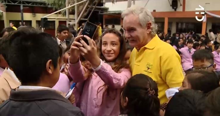Esta noble misión lo hizo acreedor del Premio Mundial de la Paz en 1990, y la admiración por su causa se hizo sentir en un colegio de la comuna de El Bosque, donde fue recibido como un héroe.