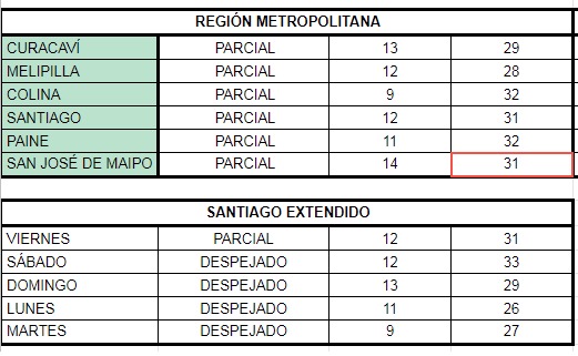 35° - Combarbalá, Putaendo, Los Andes, Til Til, La Pintana, Pirque, Talagante, Buin, Curacaví, Lo Pinto.