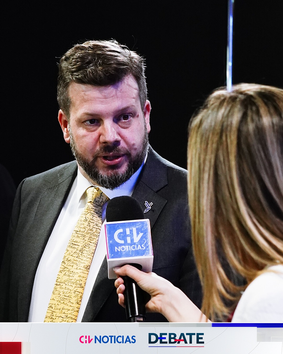 El candidato del Partido Social Cristiano llegó al Debate Presidencial 2025 transmitido por Chilevisión usando una corbata estampada con la declaración de independencia de Estados Unidos.