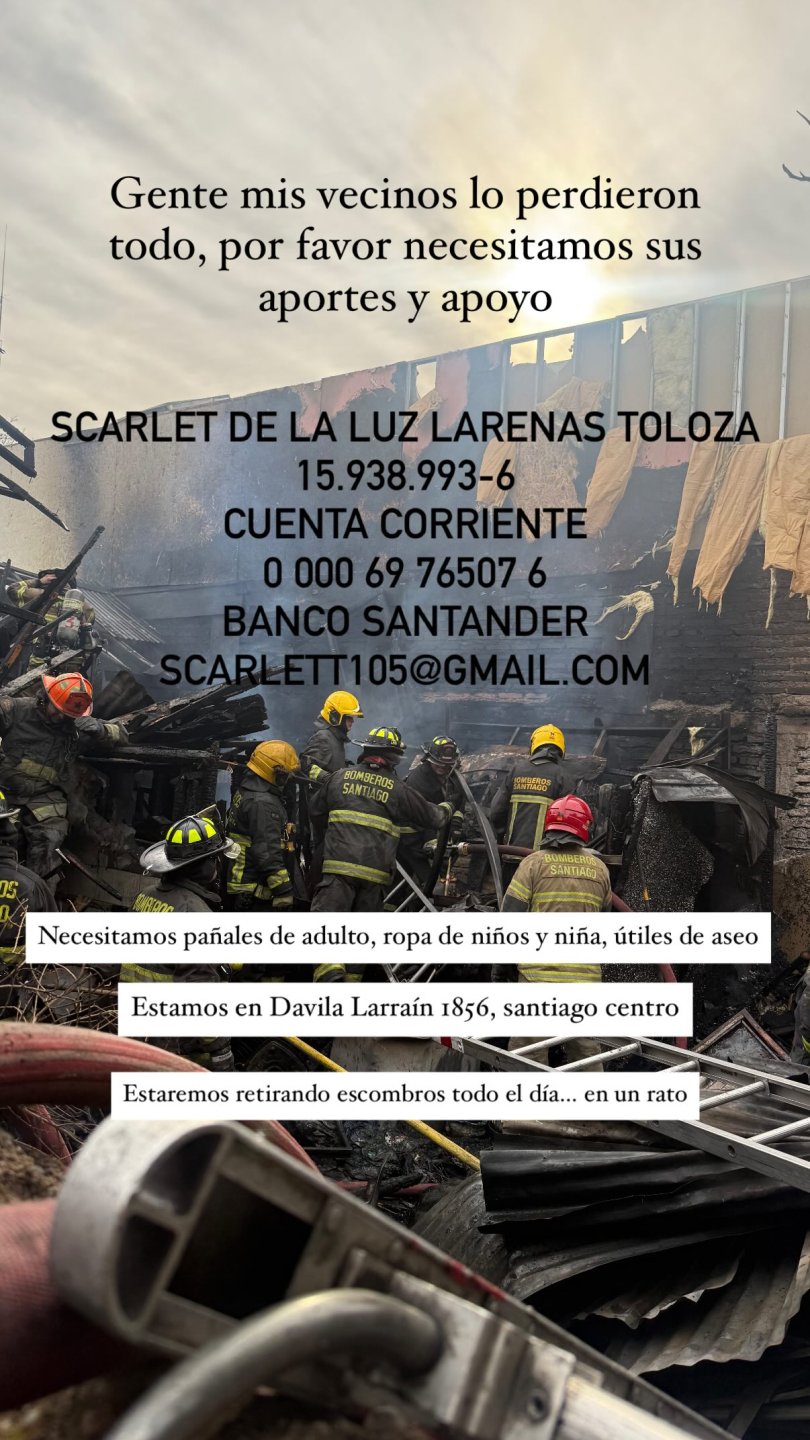 Acto seguido, Toro le hizo un llamado a sus seguidores para apoyar a los afectados, indicando que necesitan pañales de adulto, ropa de niños y niña y útiles de aseo, esto junto a unos datos para transferir dinero.