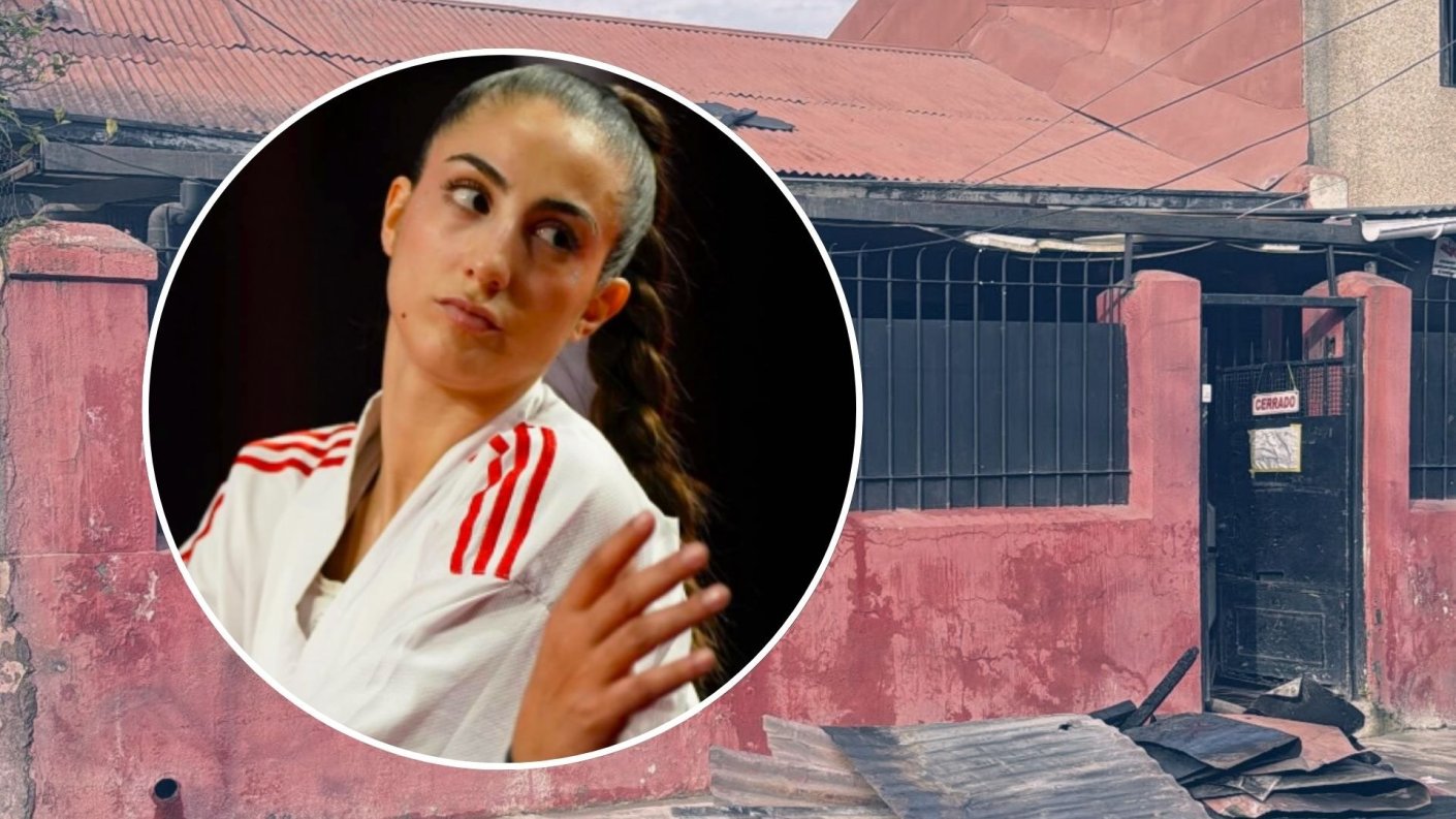 La karateca mostró los daños que sufrió tanto la vivienda de sus padres como la casa vecina, la cual fue completamente consumida por las llamas.