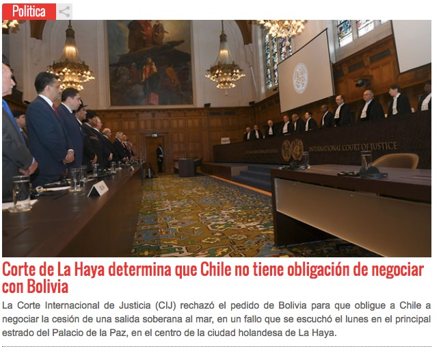 Este lunes 1 de octubre la Corte Internacional de Justicia de La Haya dio a conocer la sentencia de la demanda marítima de Bolivia, quienes pedían que Chile reconociera su obligación a negociar una salida soberana al océano Pacífico.