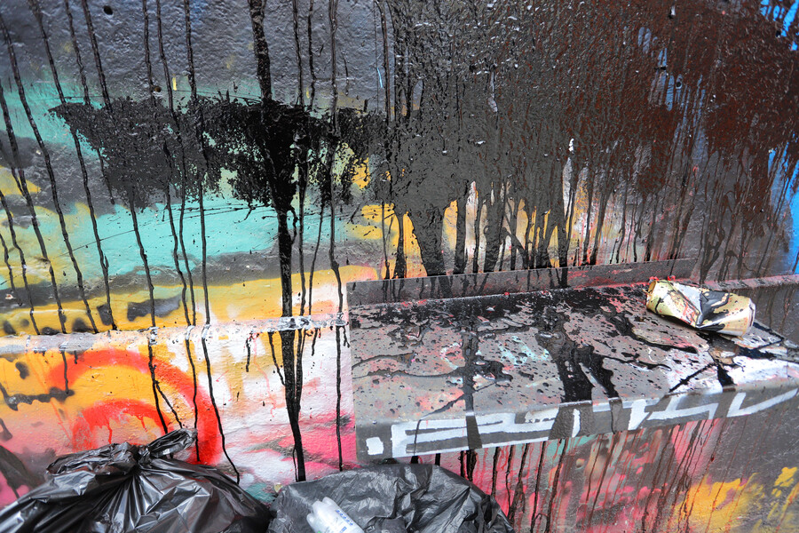 La obra ubicada en la subida Almirante Montt, en Cerro Alegre, habría sido dañada durante la noche de este domingo con una pintura de color negro.