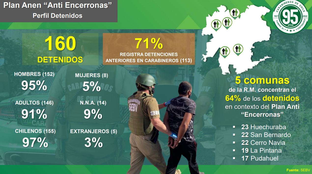 Asimismo, el 95% son hombres, un 91% son adultos y el 97% son chilenos. Junto a esto, se logró la recuperación e incautación de 51 automóviles sustraídos en esta modalidad.