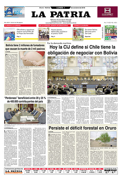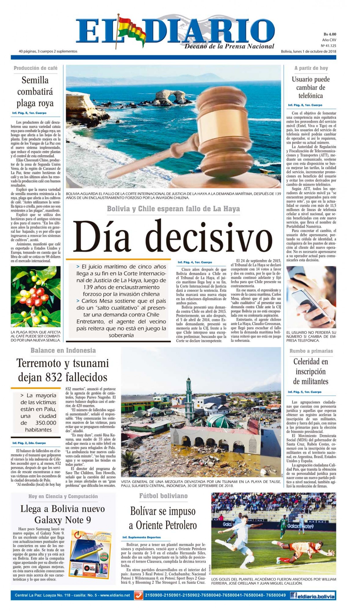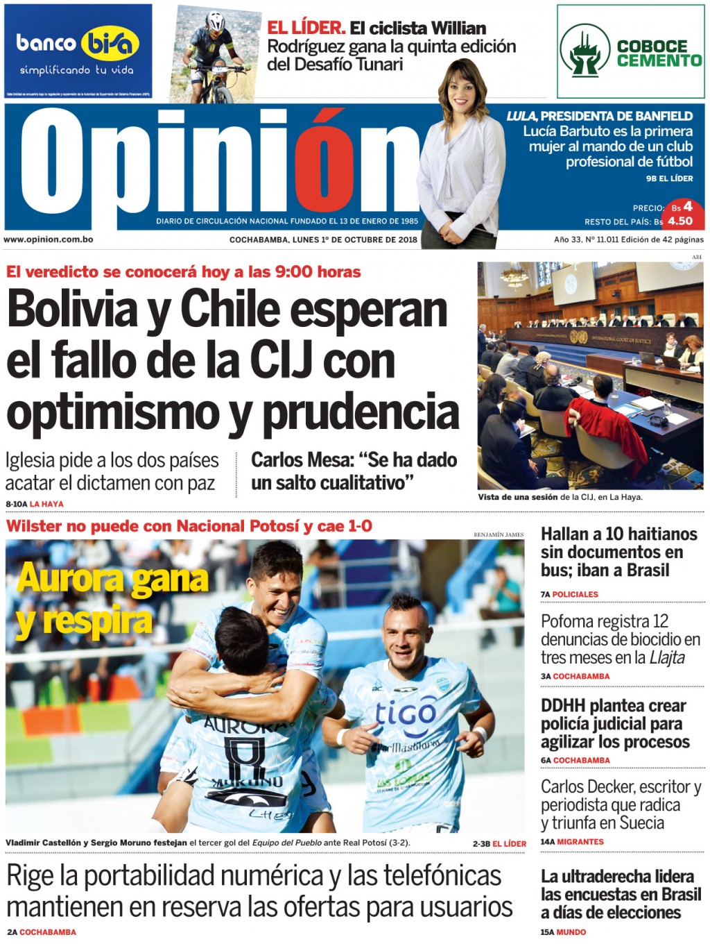 "Aguardamos el fallo de la CIJ a la demanda marítima, tras 139 años de enclaustramiento forzoso por la invasión chilena", dice uno de los periódicos.