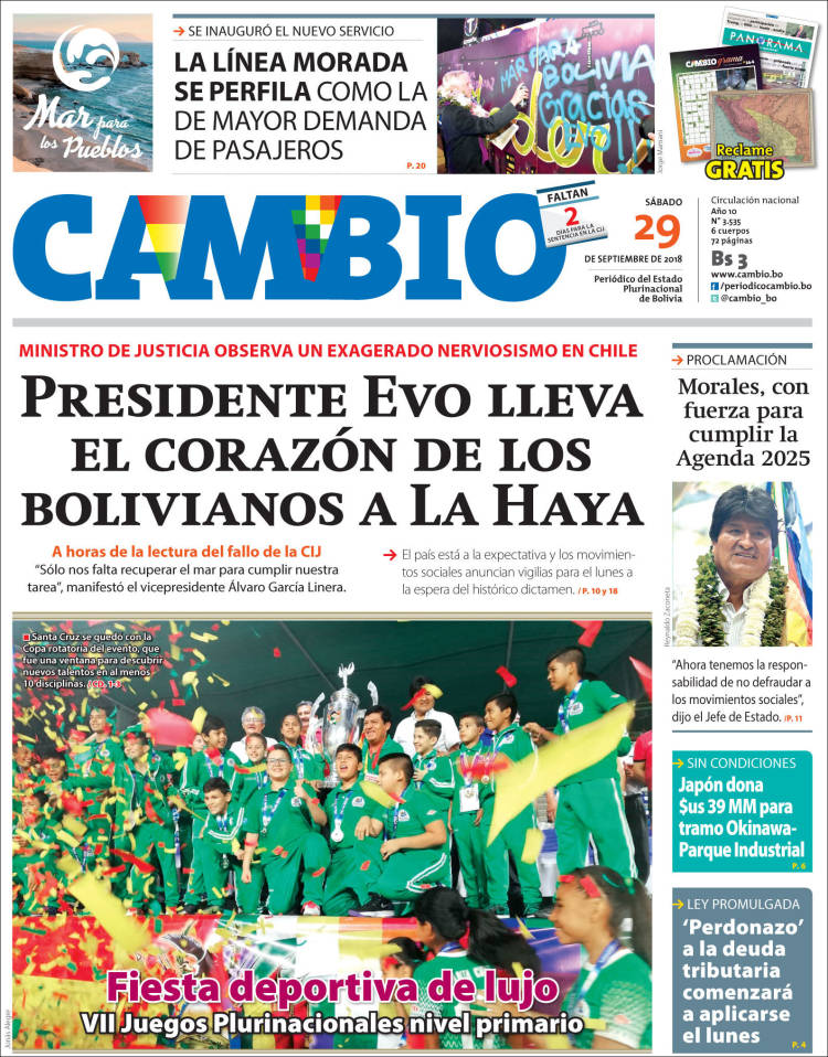 Los medios bolivianos dedicaron sus portadas a la demanda marítima: