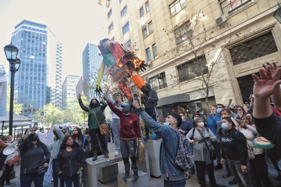 Con el pasar de los minutos, la tensión fue creciendo y los manifestantes comenzaron a tirar huevos, por lo que Carabineros se tuvo que dirigir al lugar para controlar la situación.