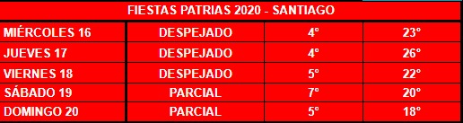 Aunque serán unas Fiestas Patrias diferentes, siempre conviene saber con anticipación cómo estará el tiempo atmosférico durante esos días. Lo primero que se consulta tiene relación con las lluvias.