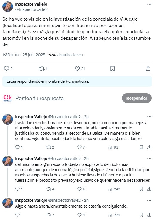 José Miguel Vallejo, también conocido como el inspector Vallejo, se refirió en sus redes sociales al caso de la desaparición de María Ignacia González, concejala de Villa Alegre.