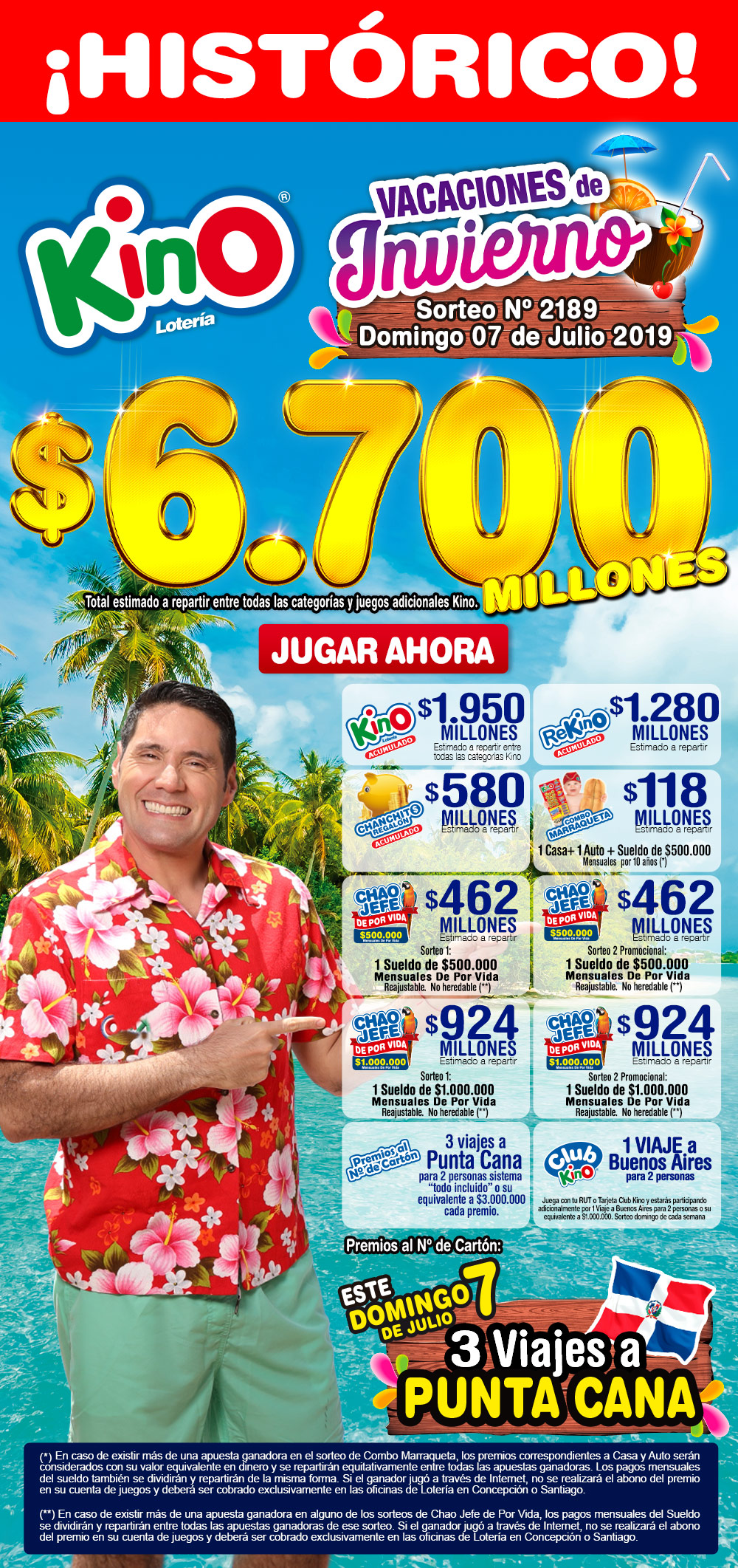 Además, este domingo hay un sorteo especial preparando las vacaciones de invierno y se sortearán adicionalmente 3 viajes a Punta Cana.