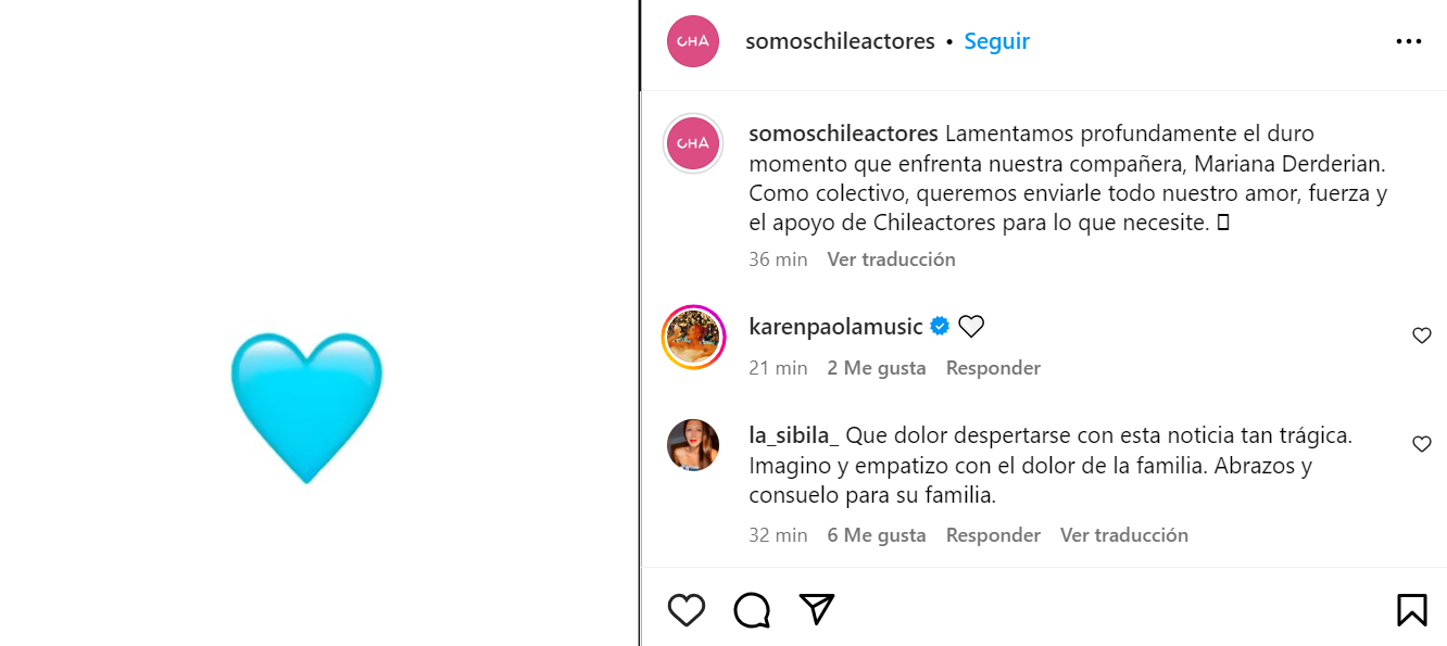 Tras conocer el lamentable hecho, diferentes personas salieron a expresar su apoyo a la intérprete, entre ellos, la organización Chileactores. El padre del pequeño está en riesgo vital tras intentar rescatarlo.