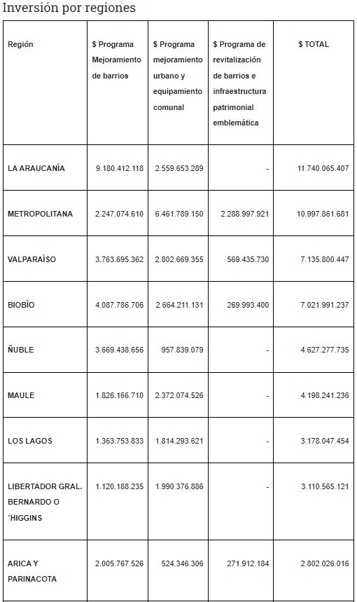 A nivel nacional, las regiones más beneficiadas con el Plan Chile Apoya a tu Comuna serán La Araucanía ($11.760 millones) y la Región Metropolitana ($10.997 millones).