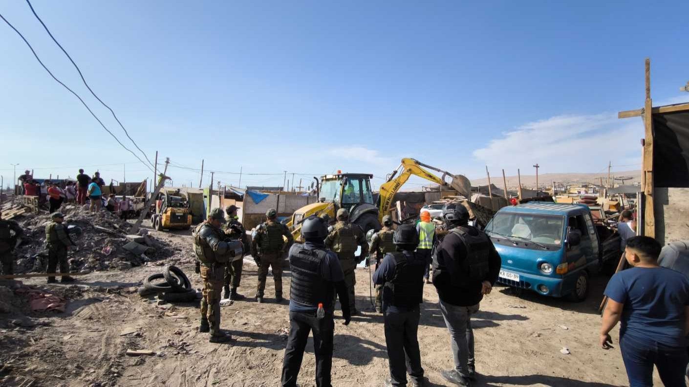 Más de 150 policías, autoridades y personal de la fiscalía participaron en la primera etapa de un masivo desalojo en Cerro Chuño, ubicado en la periferia del radio urbano de Arica.