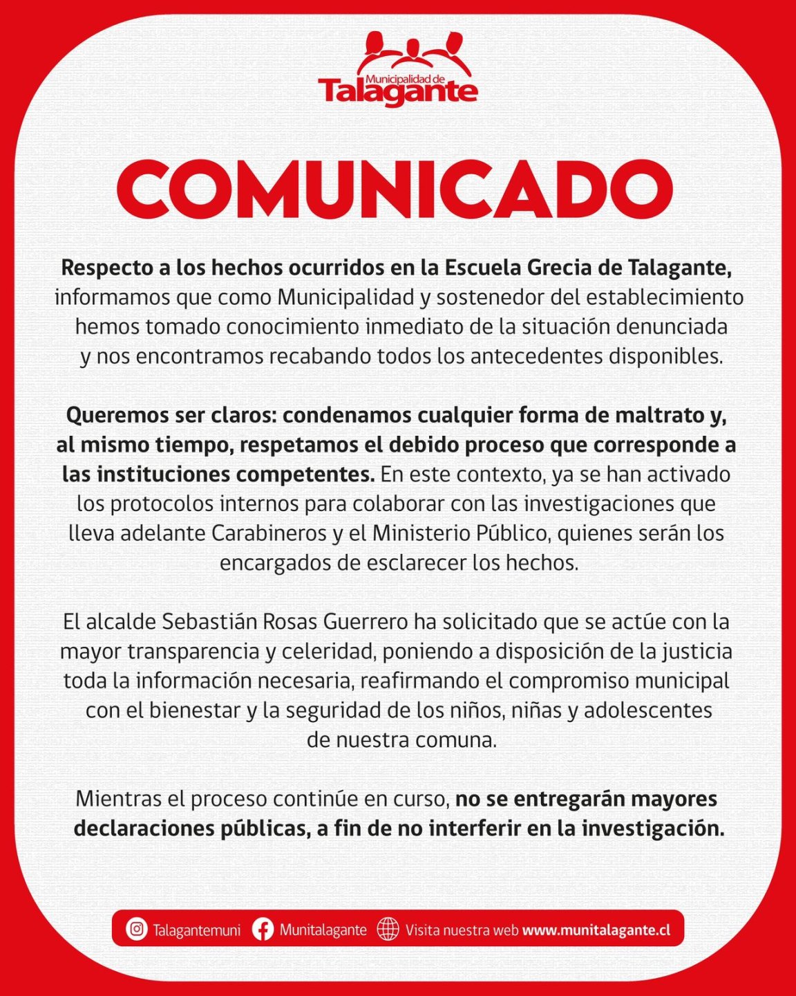 Tras esto, los menores fueron trasladados hasta la urgencia del Hospital de Talagante pata constatar lesiones, al igual que el profesor, quien luego quedó en calidad de detenido.