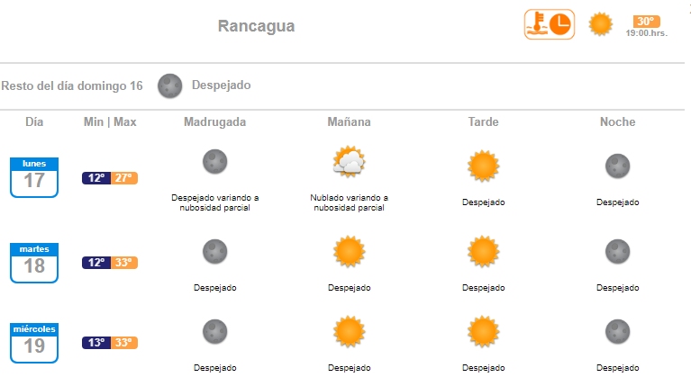 La ciudad de Rancagua también se verá afectada por este fenómeno climático este martes y miércoles, con una máxima estimada de 33°.