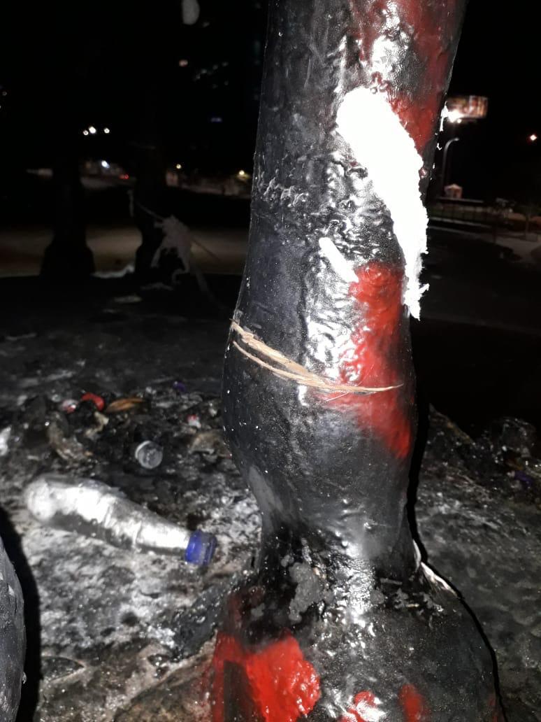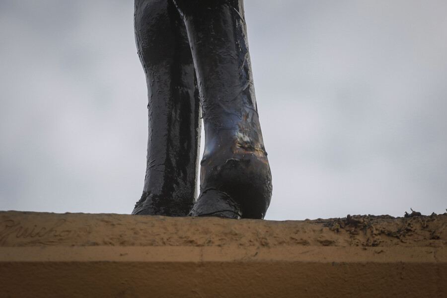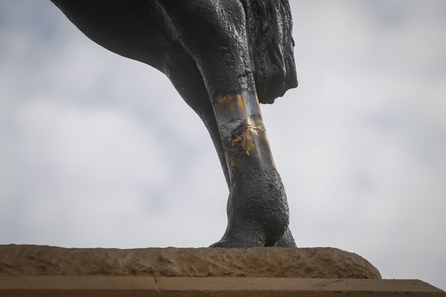La medida se adopto debido a que la estatua fue vandalizada tras el estallido social y durante los últimos días. El lunes, un hombre fue detenido tras intentar cortar las patas del caballo de la obra.