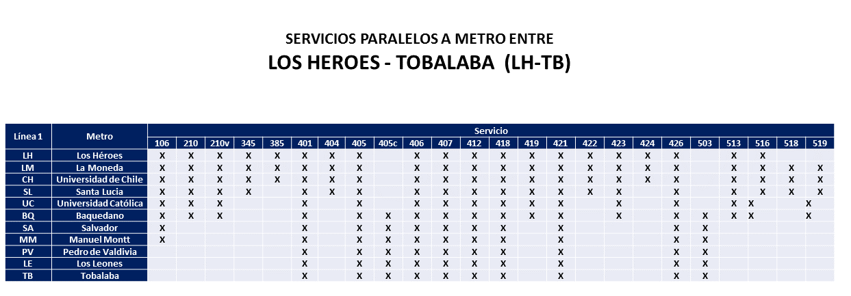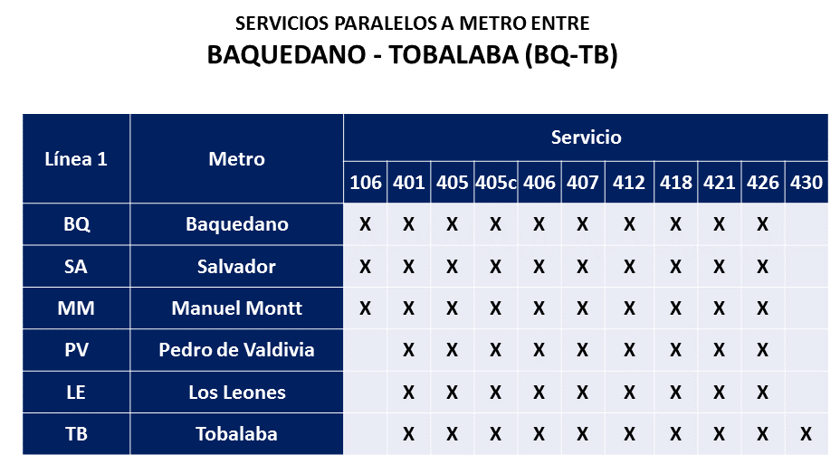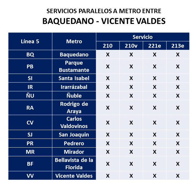 Estos buses operarán durante el sábado y el domingo en recorridos de ida y regreso, realizando servicios más directos y tramos más acotados, deteniéndose solo en las estaciones de Metro.