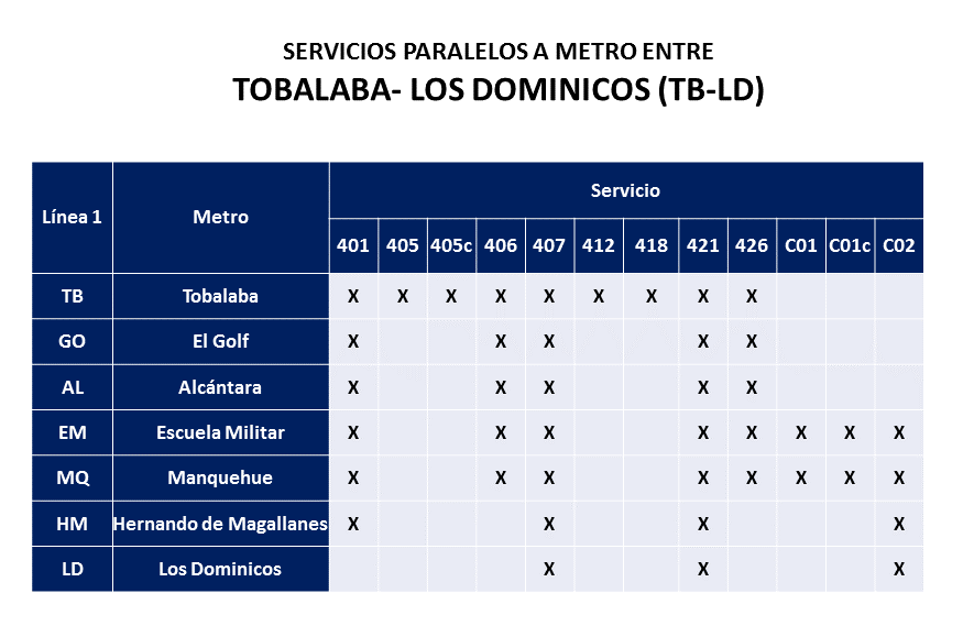 Tobalaba – Los Dominicos - Tobalaba: 15 buses