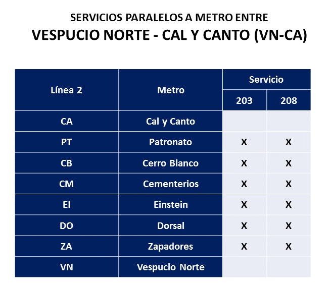 Cal y Canto - Vespucio Norte - Cal y Canto: 20 buses