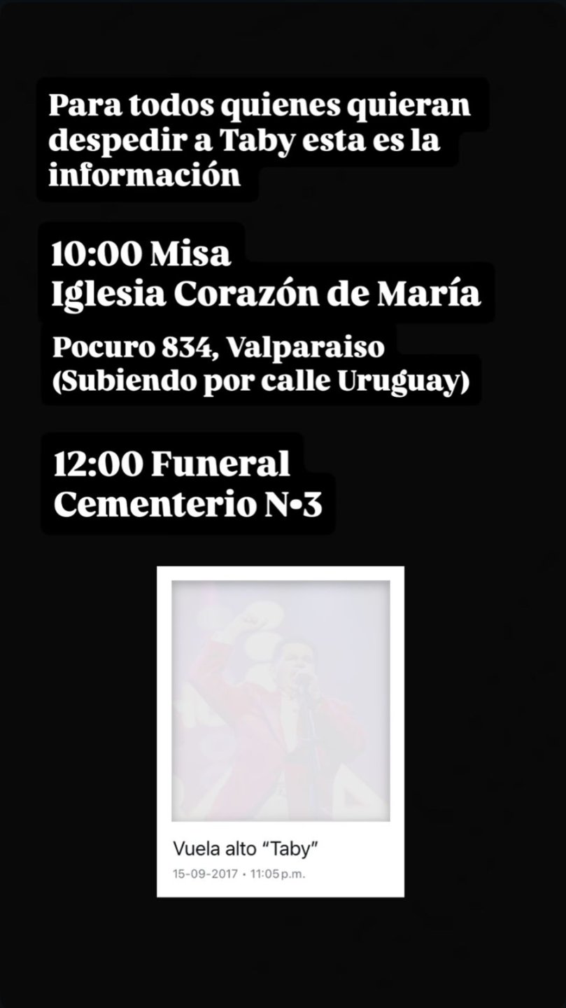 Este jueves 18 de diciembre a las 10:00 horas será la misa en la iglesia Corazón de María, ubicada en Pocuro 834, en Valparaíso y finalmente, el funeral se realizará al medio día en el Cementerio N.º 3 de Playa Ancha.