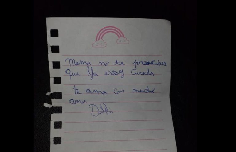 A su vez, dieron a conocer una carta que la pequeña escribió a su madre: “Mamá, no te preocupes, ya estoy curada. Te amo con mucho amor, Delfi”.