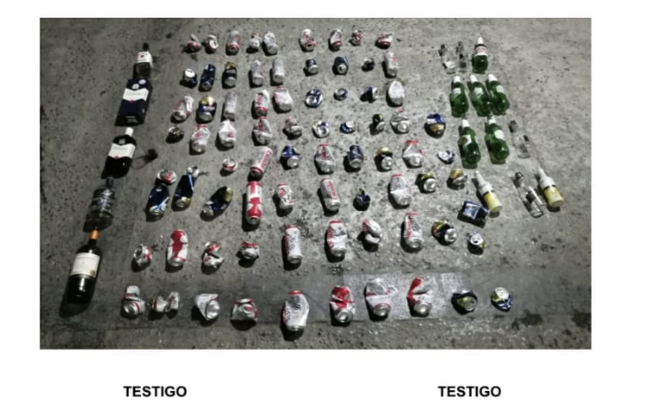 Finalmente, encontraron 78 latas y 10 botellas de cerveza, dos botellas de vodka, dos de whisky, una de pisco y una de vino tinto. En ninguna de ellas quedó ni una sola gota de alcohol.
