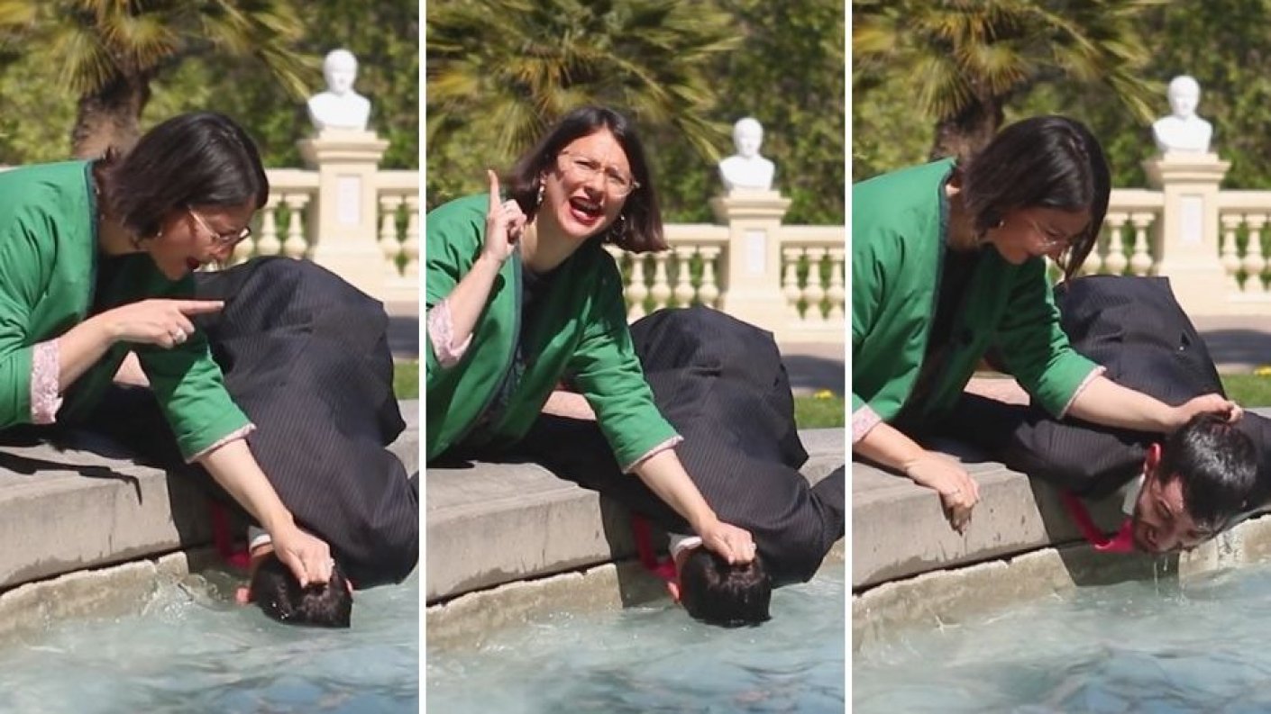 En las imágenes, la actual jefa comunal de Santiago aparece "ahogando" a Heim en una pileta del cerro Santa Lucía.