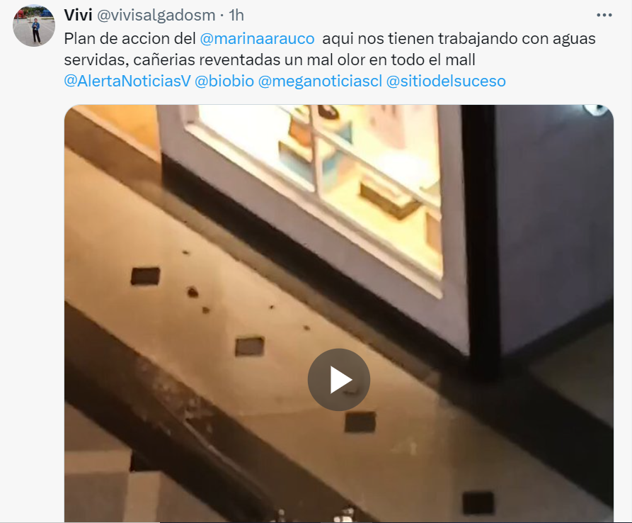Desde el mall Marina Arauco, emitieron un comunicado en el que indicaron que en uno de los sectores sufrieron "la rotura de una de las matrices sanitarias, lo que provocó la inundación de parte del primer piso".