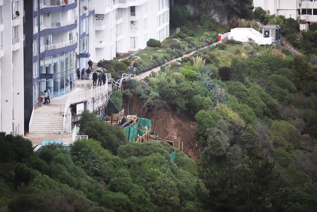La noche del sábado se reportó un nuevo socavón en Reñaca y que se vincula al sistema frontal registrado durante las últimas horas, provocando la evacuación de al menos 87 departamentos del edificio Euromarina II.